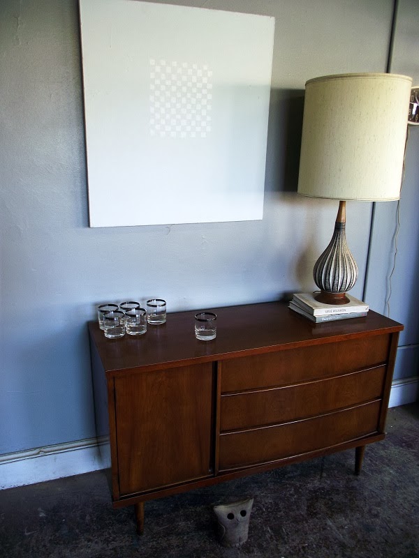 This is a beautiful MCM piece. There are three large drawers and then a door that opens up for storage. Just in time for the holidays! The casing is in a sleek white and is wonderful with the richness of the original wood. Perfect as a buffet sideboard media stand credenza dresser etc.